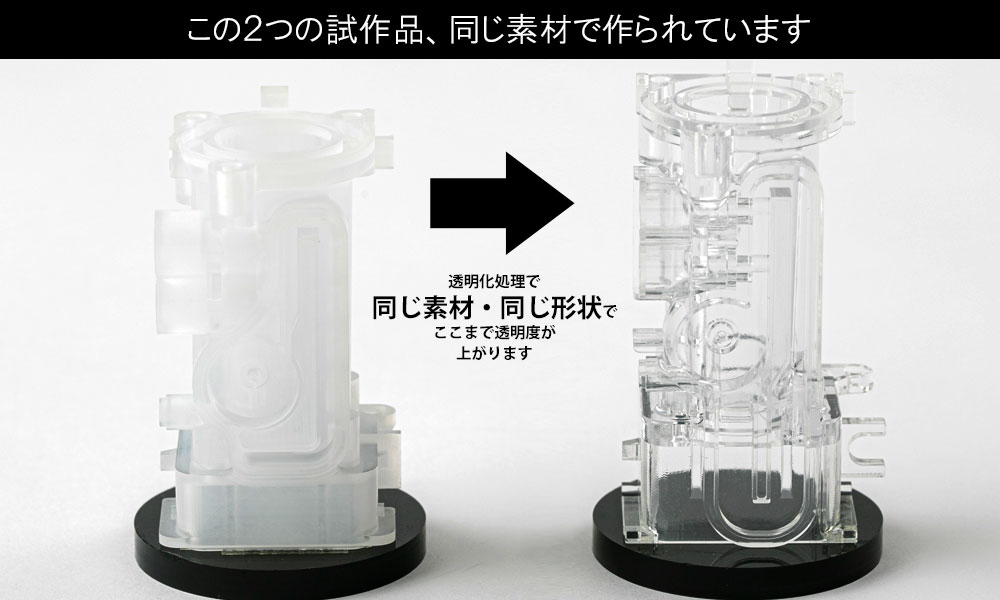 樹脂試作品がそのまま透明品となれば